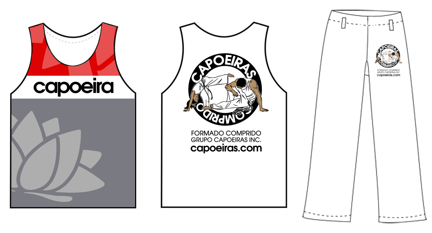 Capoeira uniform including pants and t-shirt can be bought or arranged from the link below.